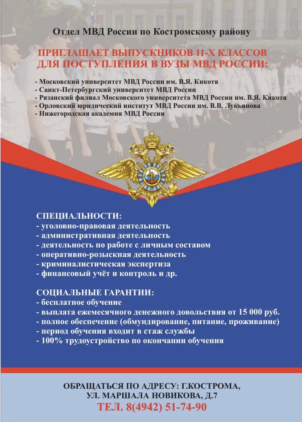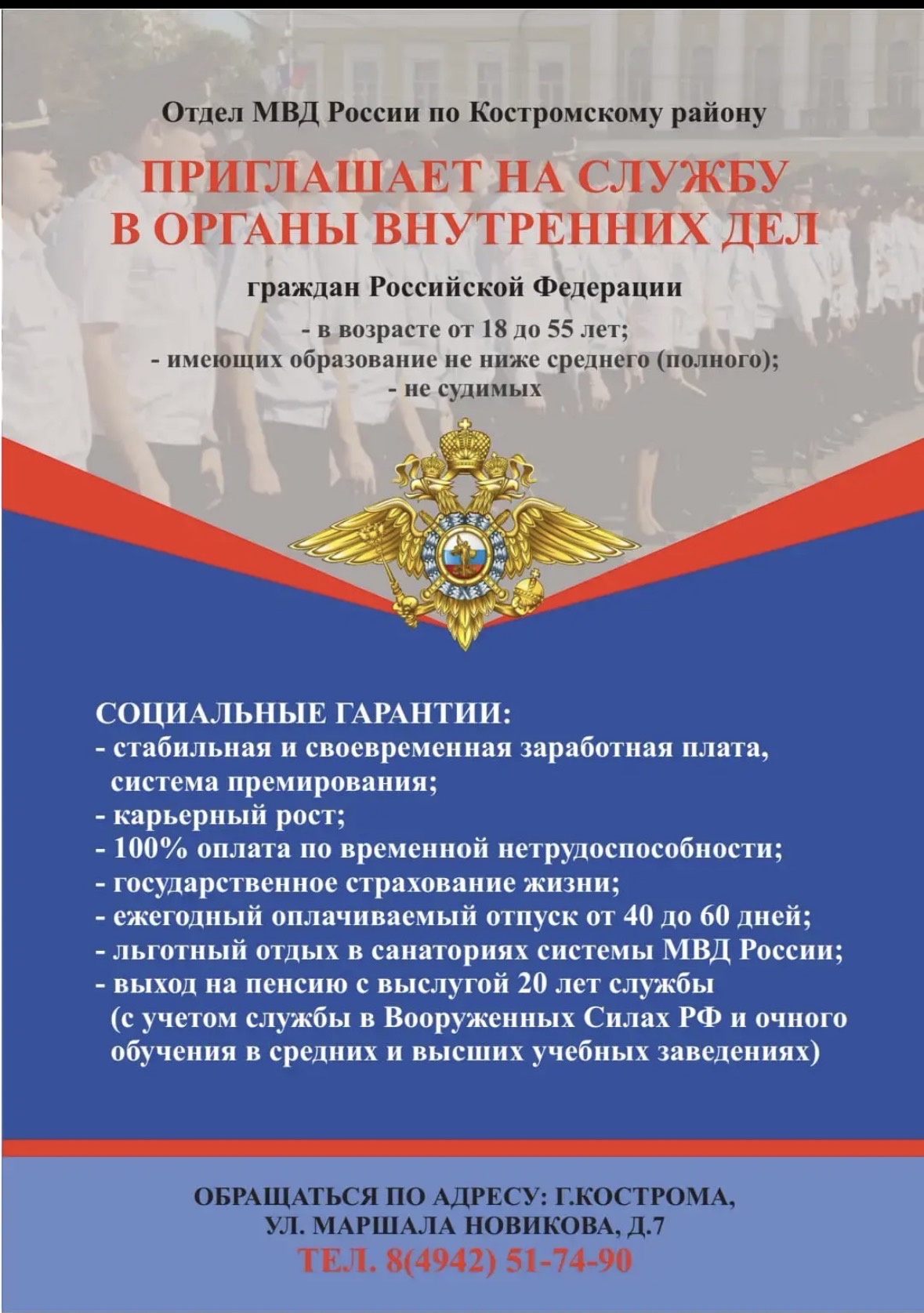Подать заявление для получения необходимой государственной услуги можно непосредственно в ОВМ ОМВД России по Костромскому району, в Многофункциональных центрах г. Костромы, а также воспользовавшись Единым порталом государственных услуг на сайте или в личном кабинете: gosuslugi.ru.